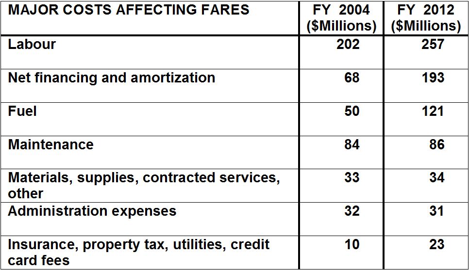 • New funding mechanism Develop a formula to balance provincial and user contributions. Future fare increases must be within the rate of inflation.