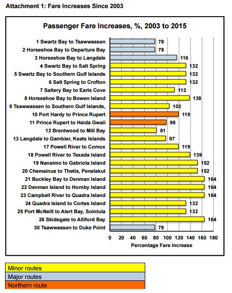 We are more concerned with the economic sustainability of the ferry-dependent communities served by the Minor and Northern routes, and Route 3. The ferry service is the economic life-line for these communities.