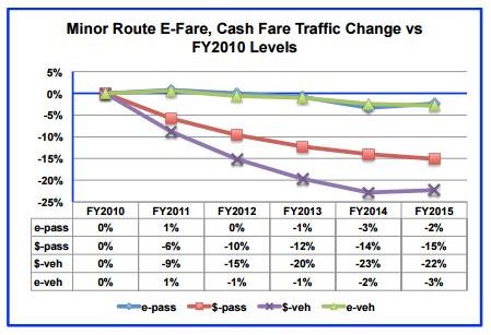 | Minor route traffic trends comparing e-fare and cash-fare traffic | |